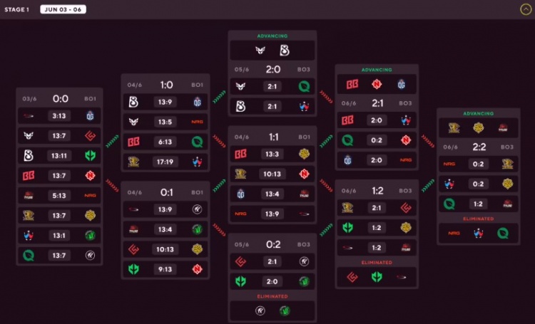 2-2 组别的首场晋级淘汰决定赛由 LVG 对阵 NRG。首图炙热沙城 II (dust2) 中,LVG 在对手握有 4 个赛点的情况下拖入加时阶段,最终 22:20 获取胜利;来到炼狱小镇 (inferno),LVG 凭借强劲的中盘表现 13:8 带走比赛。