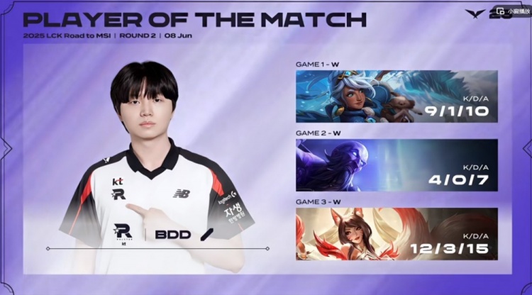 直播吧6月8日讯 2025年LCK春季赛进入MSI选拔赛阶段,今天对阵的双方是KT和NS!
