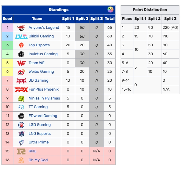 AL第一赛段拥有15分世界赛积分,第二赛段保底亚军最少将收获70分世界赛积分。