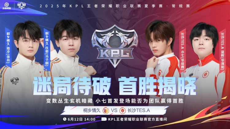 直播吧6月12日讯 2025KPL夏季赛今日第一场比赛是由桐乡情久对阵到长沙TES.A!