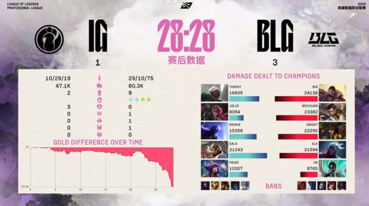 第四局BLG借助红色方counter位照抄AL作业,选了个中单蛇女对阵Rookie中单的瑞兹!前期BLG直接下路强压,Beichuan赵信和knight蛇女也赶到,BLG两波下路团拿下优势!中期团战iG尽力操作,但BLG除了三C之外还有个Beichuan赵信根本没人管啊!几波团战他站到了最后完成收割!直接打出7-0-5的数据有点管不住了!Rookie瑞兹TP中路兵直接落地成盒还送了个小龙!knight蛇女也发育到位,BLG不给机会击杀iG上野拿下大龙,随后下路团又是Rookie瑞兹被留!BLG高地逐个击破,团灭iG结束比赛!也拿下了LPL第二个前往MSI的名额!