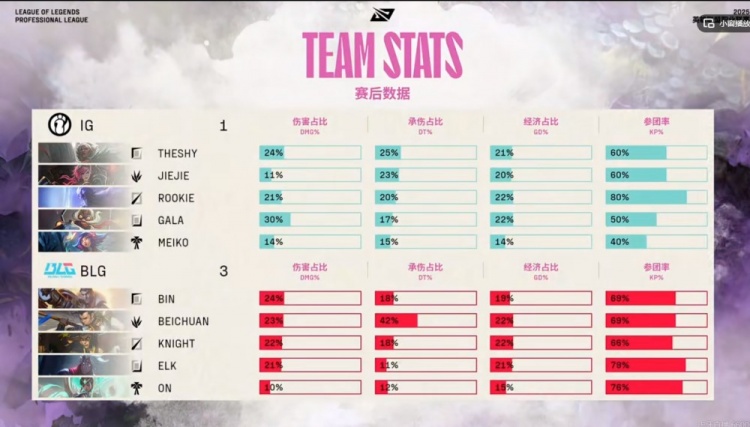 BLG:上单Bin、打野Beichuan、中单knight、下路Elk、辅助ON