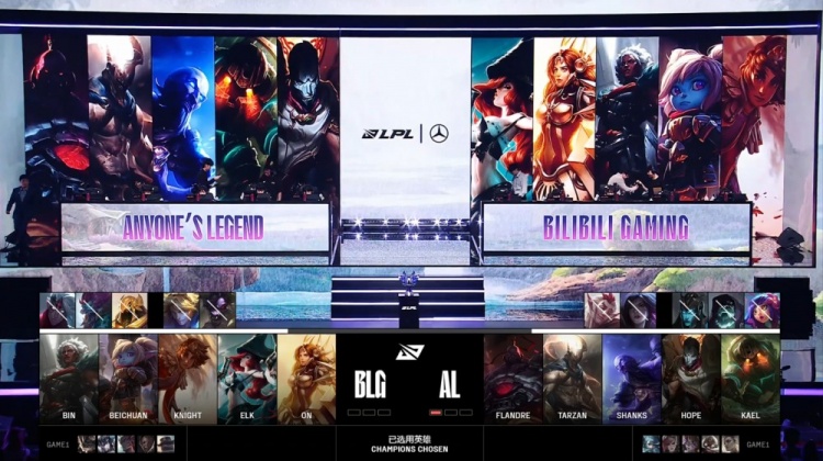 蓝色方BLG:Bin安蓓萨、Beichuan波比、knight岩雀、Elk女枪、ON女坦