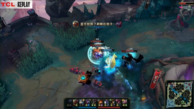 【8:18】巢虫团,ON洛进场抬飞没闪的Kael,后者交治疗拉开,AL吃掉两条巢虫,BLG拿到一条巢虫,双方经济持平。
