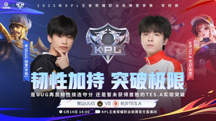 直播吧6月14日讯 2025KPL夏季赛今日第一场比赛是由长沙TES.A对阵到常山UUG!