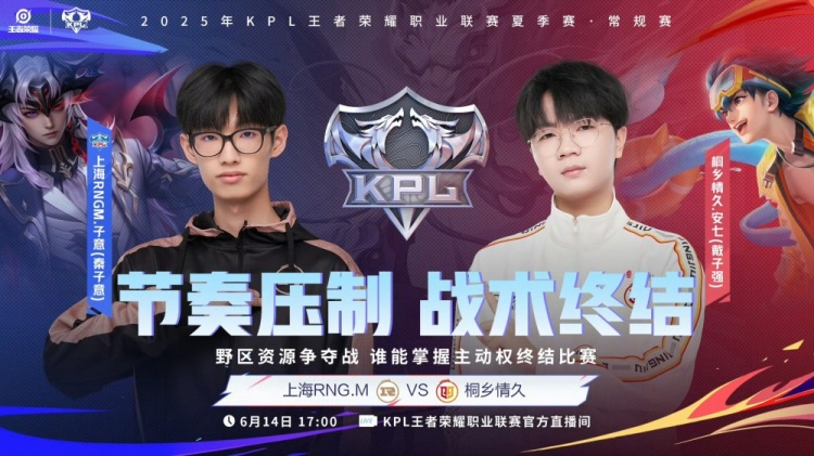 直播吧6月14日讯 2025KPL夏季赛今日第二场比赛是由桐乡情久对阵到上海RNG.M!