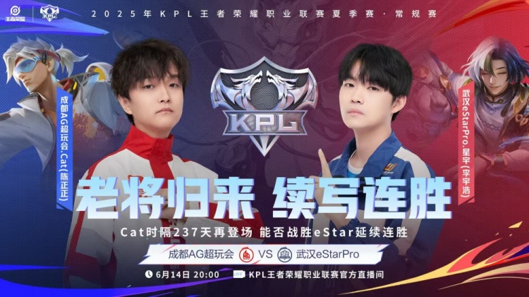 直播吧6月14日讯 2025KPL夏季赛今日压轴之战是由成都AG超玩会对阵到武汉eStarPro,AG能否战胜eStar延续连胜创造历史,让我们一起期待!