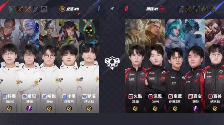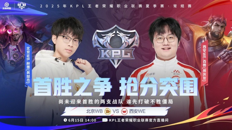 直播吧6月15日讯 2025KPL夏季赛今日第一场比赛是由北京WB对阵到西安WE!