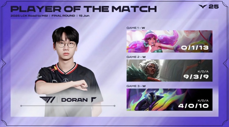 直播吧6月15日讯 2025LCK"MSI选拔赛"迎来终局之战,由T1对阵HLE!
