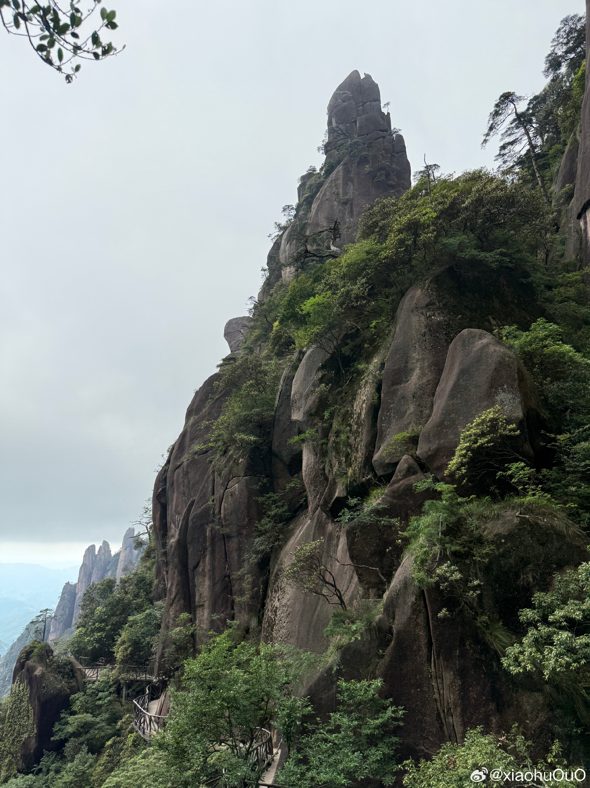 >WBG中单Xiaohu分享江西三清山旅游照:手持登山杖+偶遇猫猫