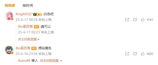 Knight评论回复:白色吧;Bin哥回复:真可以~。
