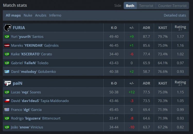 FURIA:molodoy、yuurih、FalleN、KSCERATO、YEKINDAR
