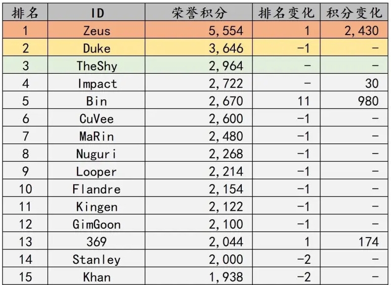 >合理?抗吧自制LOL选手历史地位排名:Zeus第一!TheShy第三!Bin第五