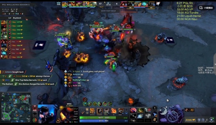 【19分钟】shiro带盾小骷髅逼高,VP开雾从下路高地绕后开尸王,结果NTS影魔一个摇大拉满AOE!VP双酱油倒下之后人马踩+拉比克举再留到了Daxak的兽王!这波Tidebound打出0换3,拆掉对手中下两路高地!