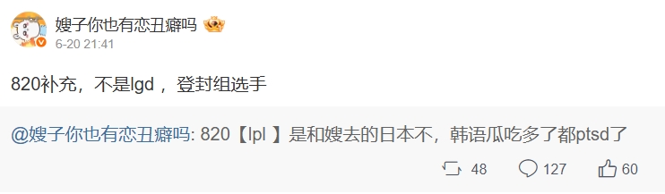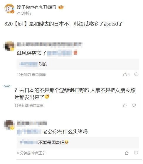 微博原文:是和嫂去的日本不,韩语瓜吃多了都ptsd了。
