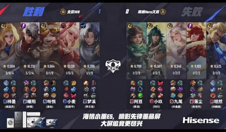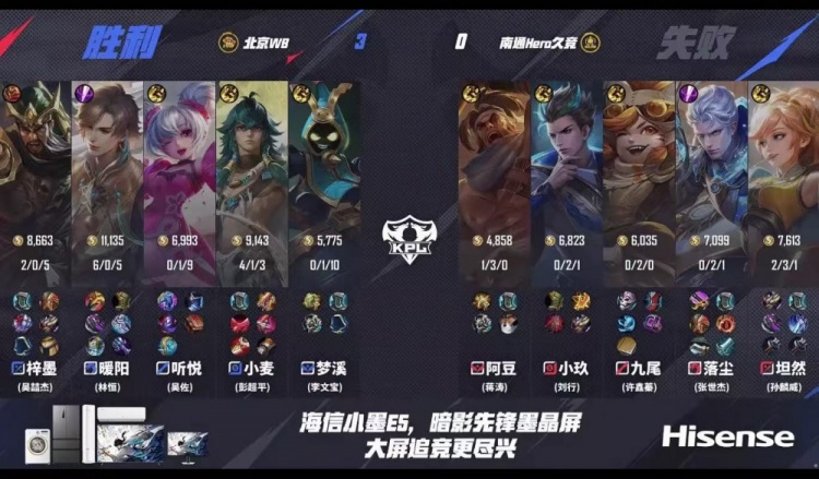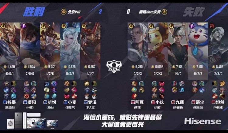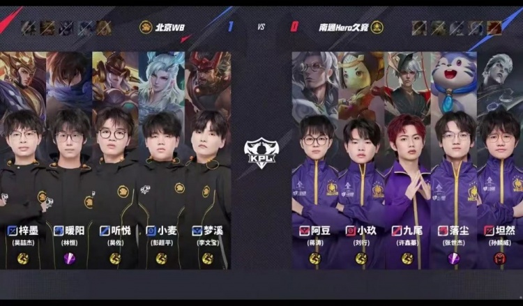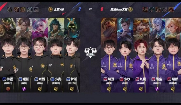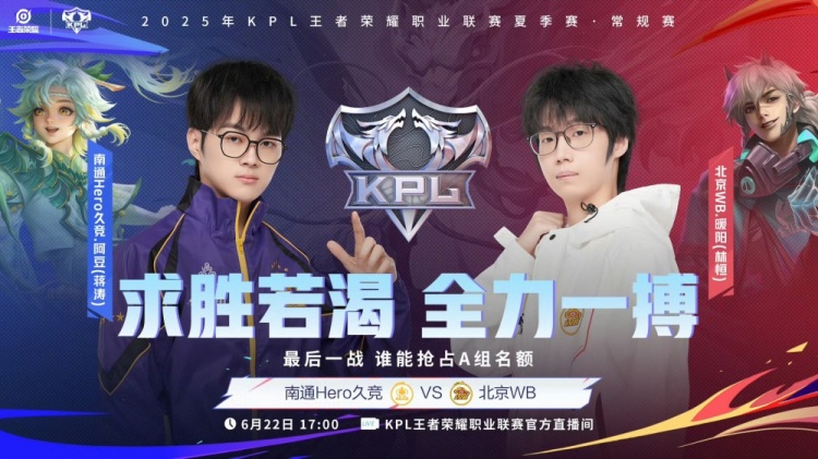 直播吧6月22日讯2025KPL夏季赛今日第二场比赛是由南通Hero久竞对阵到北京WB!
