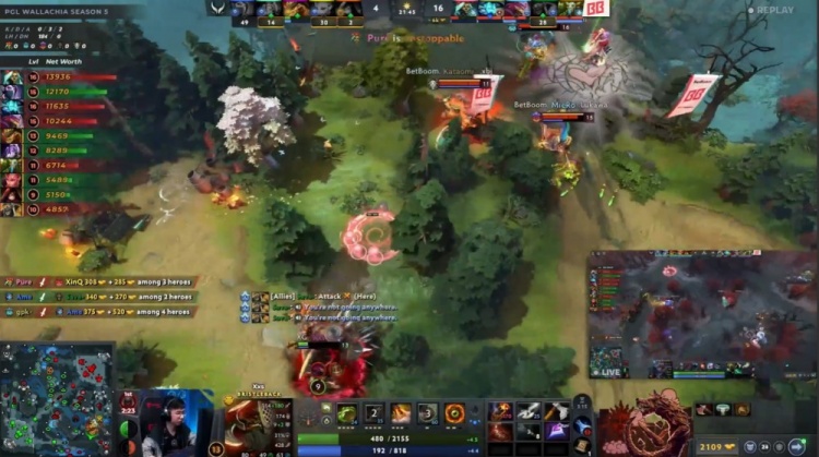 【11:33】XinQ野区迷路被BB五人围剿人头送给Pure,BB经济领先5k。