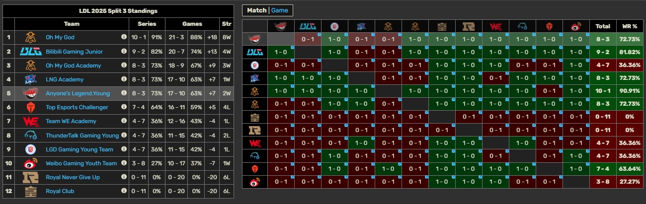 值得一提的是,LDL队伍的参赛选手平均年龄是三个赛区次级联赛中最小的,只有19岁半左右;同时BLG二队是LDL联赛第三赛段的小组第二名,头名则是此前在LPL联赛征战的OMG。