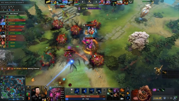 【21:09】XG五人入侵NAVI野区抓掉小Y,BOOM人群中先杀哥哥,XG四人瞬间阵亡,XinQ被NAVI四人追击带走,NAVI打出1换5团灭XG,经济领先7k。
