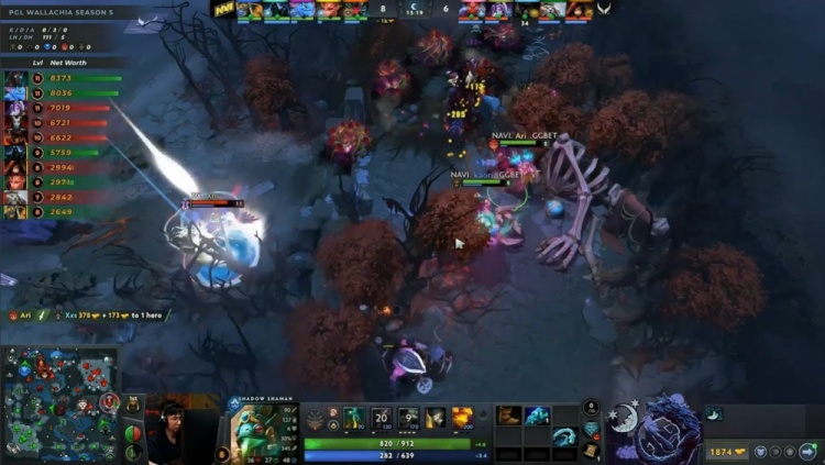 【7:51】NAVI四人去上在树林逮捕poloson,ame随后叫Xm来上反杀Kaori小Y得手,双方经济持平。