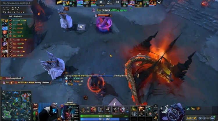 【23:59】XG五人开雾抓NAVI打盾,但NAVI先将肉山击杀卖掉Ari与BOOM,不朽之守护给到Yuragi。