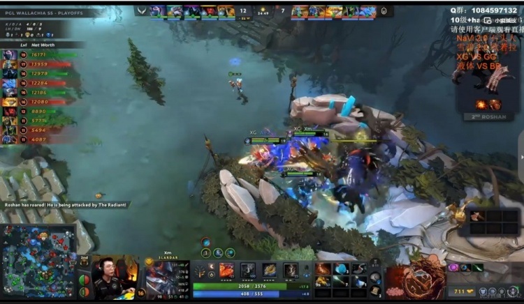 【34分钟】肉山团,XG开雾绕后想秒双头龙结果吃到了冰封,被watson幻影长矛手贴脸直接秒掉了Ame的TA!没了TA,XG完全没输出了!XG三大哥先后倒下,GG打出0换3轻松拿下肉山!watson的幻影长矛手带盾!随后GG直接带盾拆掉了接近两路高地!经济差瞬间17K了!