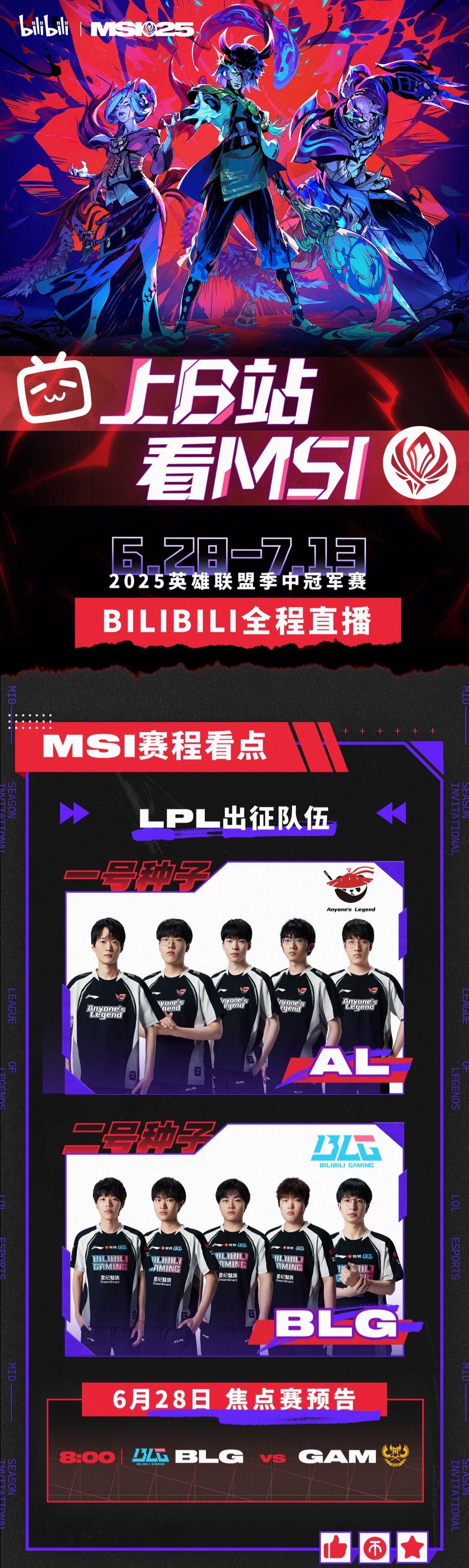 2025英雄联盟季中冠军赛(MSI)即将开赛!6月28日-7月13日,B站全程直播!德云色西卡限时回归,超多明星主播OB陪看,还有每日赛后深度复盘。观赛指路