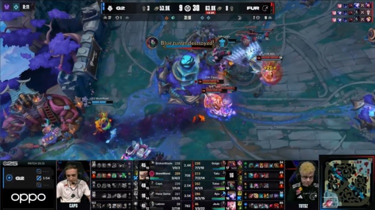 第三局:🎮涅槃组既视感!Ayu卢仙&Caps安妮相互喂饭 FUR难翻盘送G2赛点