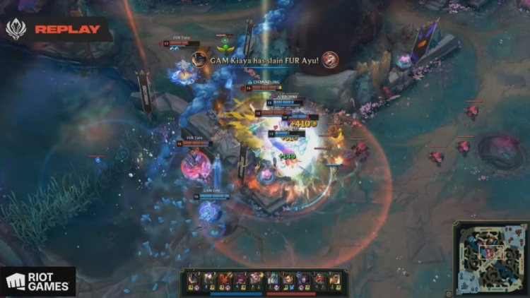 【23:01】GAM四人埋伏上路三角草随后开厄塔汗,FUR前后包夹,Emo岩雀隔开Tatu赵信,随后Tatu闪现抢掉厄塔汗,Levi潘森发力击杀FUR上辅拿到双杀,GAM打出0换2。