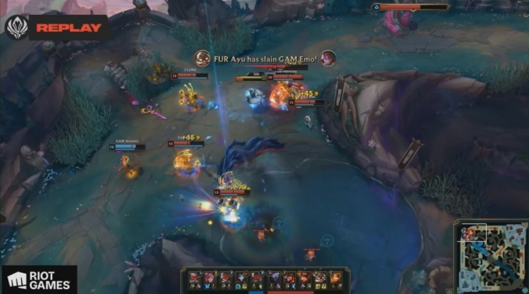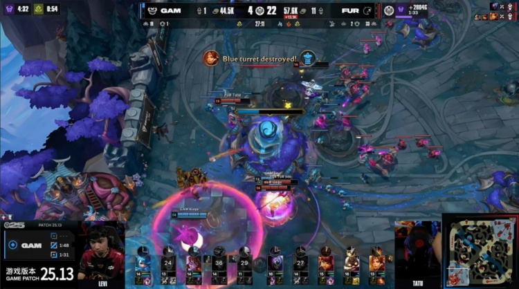【23:37】FUR推掉GAM下路水晶,kiaya与Emo被抓阵亡,FUR打出0换2,经济领先1w。
