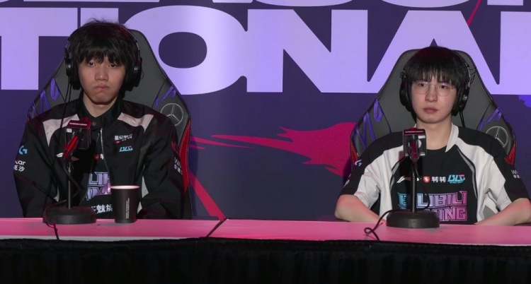 直播吧6月29日讯 2025MSI入围赛胜者组决赛,BLG3-0横扫G2晋级正赛,赛后BLG下路组两位选手参加媒体发布会。