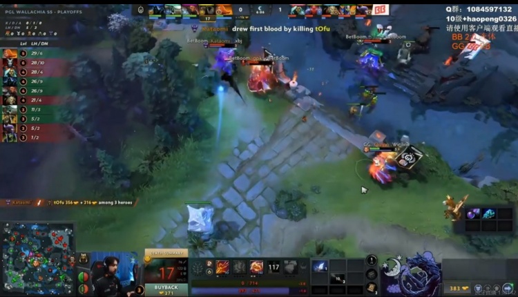 【6分钟】BB中路强动t0fu的小Y,最后是Kataomi祸乱拿下一血!随后拿下奥术符的gpk女王配合队友再强杀了Quinn火女!Save拉比克被换掉了!BB的1换2!