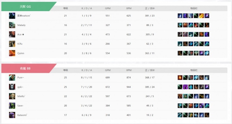 天辉GG:watson亚巴顿、t0fu暗影萨满、Quinn莉娜、Maladych不朽尸王、Ace斧王