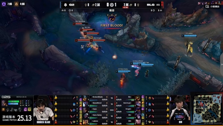【17:31】BLG拿下峡谷先锋!领先1500块了!
