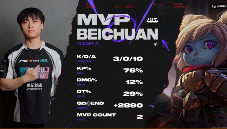第二局:🎮哪来的神人?skewmond蔚单人绕后送大龙 BLG再赢一局收下赛点