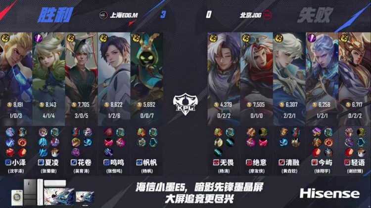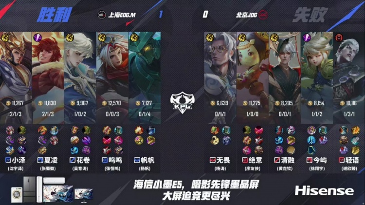 第一局:上海EDG.M 1-0 北京JDG
