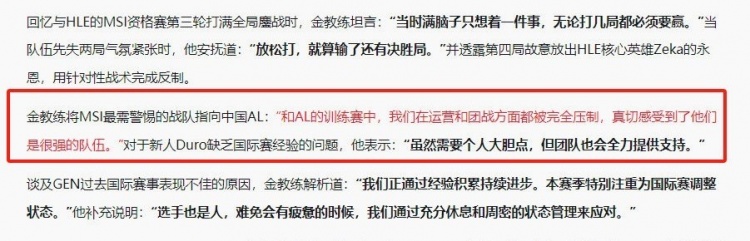 之前吹AL训练赛全面压制GEN,被经理爱笑紧急辟谣。这次还在继续吹,那我倾向AL训练赛应该是真的很猛。
