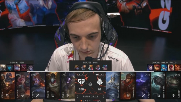 红色方G2:BrokenBlade加里奥、SkewMond猴子、Caps瑞兹、Hans Sama塞纳、Labrov塔姆