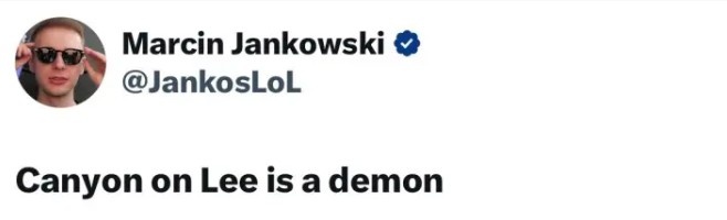 >GEN对战G2第三局后 Jankos发文:Canyon的盲僧是个恶魔