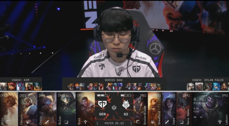 蓝色方GEN:Kiin杰斯、Canyon蝎子、Chovy岩雀、Ruler飞机、Duro波比