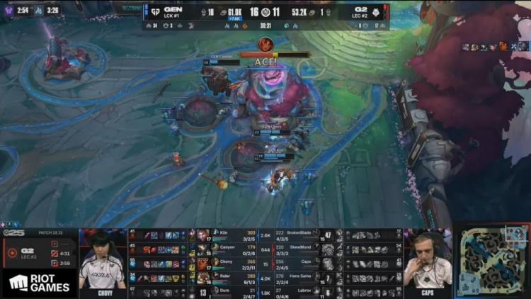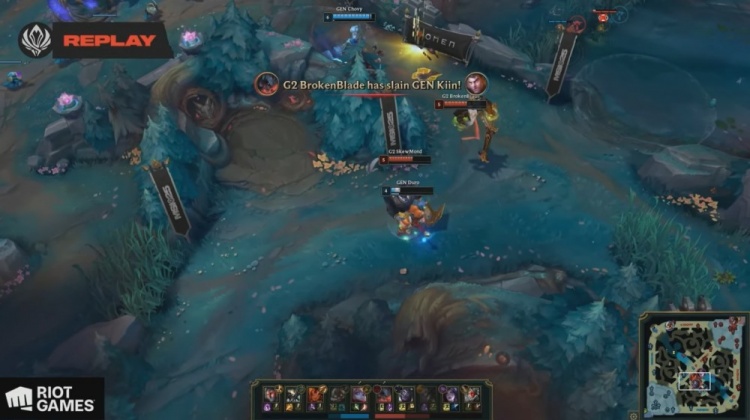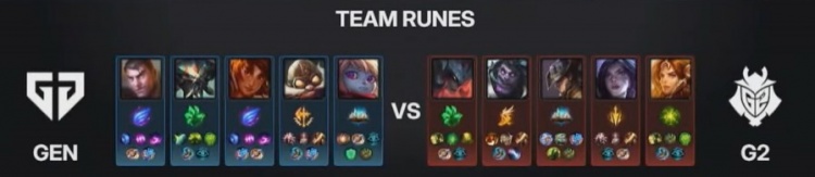 后期GEN拿下厄塔汗后不断蚕食G2防御塔,Caps卡牌飞下与BB抓掉Kiin后,同时SkewMond蒙多中路被击杀,GEN直接扭头吃掉大龙,G2前来龙团为时已晚,Ruler飞机狂轰三杀。最终GEN中路推进,Hans Sama卡莎飞脸毫无伤害被Ruler飞机导弹融化,GEN摧枯拉朽逐个击破G2众人将其团灭,轻松推平基地拿到比赛胜利顺利晋级,G2则掉入败者组。
