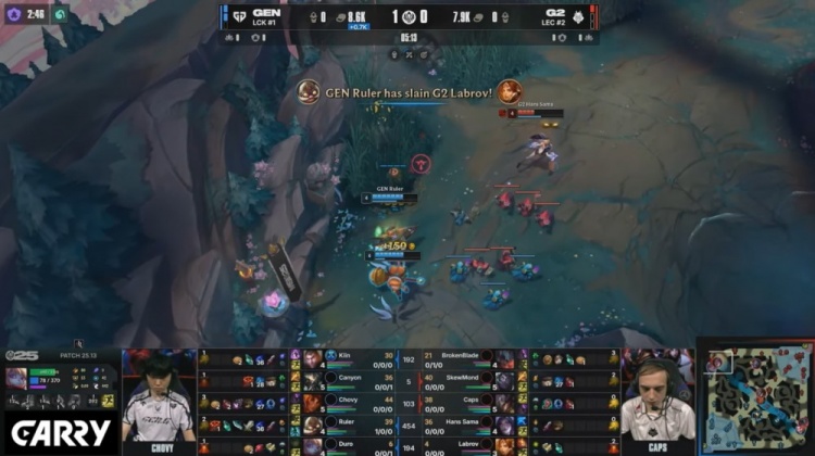 第一局:🎮Chovy冒汗了?招牌沙皇遭暴打 Caps永恩一剑开三人 G2赢首局