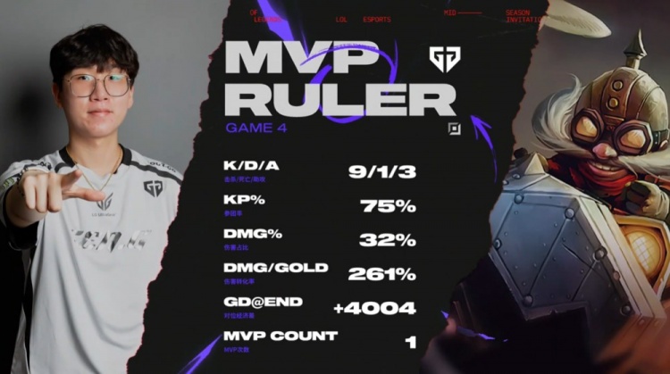 第四局前期,Duro波比多次“坚定风采”规避Labrov女坦先手,反手将其壁咚上墙配合Ruler飞机拿下击杀,GEN逐步建立线上优势。小龙团战中,Caps卡牌率先被击杀,SkewMond蒙多击杀残血Duro波比帮助G2打出1换3,但经济依旧落后。