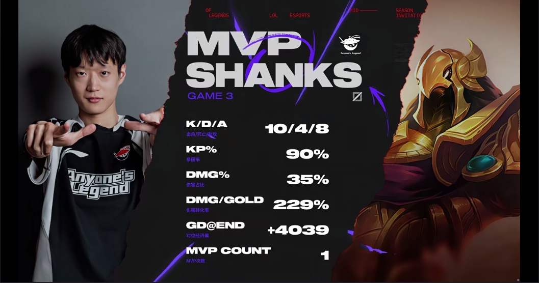 >LPL终于有自己拿得出手的沙皇了!Shanks沙皇完美表现斩获MVP!