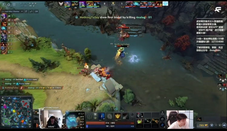 【15分钟】Wisper黑贤蹲传送阵,虽然拉墙了三人,但是Tidebound五人齐,黑贤输出不足杀人不成被反杀。NTS蓝猫飞中路和Bach斧王动手4nalog影魔,影魔近身大换掉蓝猫。