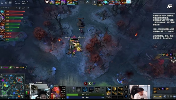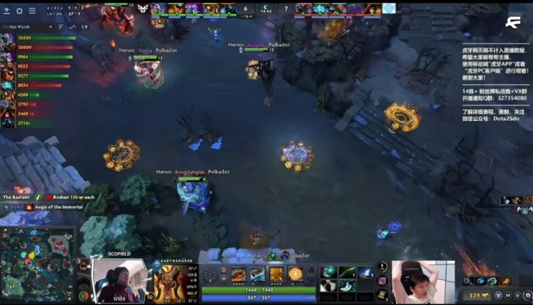 【41分钟】Heroic下路上高,Wisper黑贤拉三人,Scofield撼地者马上接控制,Tidebound技能交完没有完成击杀,下路被拆。