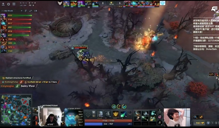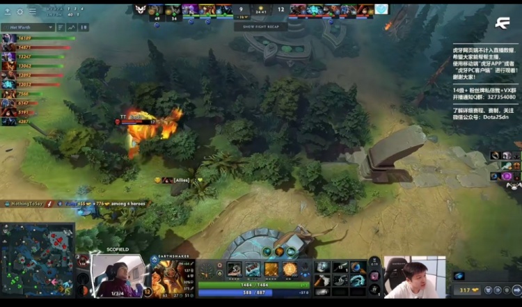 【9分钟】Scofield撼地者被动手后带着人绕了半个地图,NTS蓝猫第一次飞拉没有完成击杀,回去补完状态后传送门过来再次飞拉击杀撼地者,但是也被拖延了将近1分钟的时间。