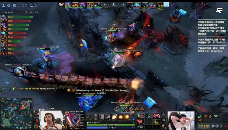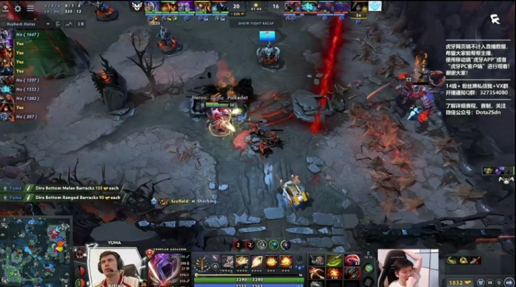 天辉Heroic:Yuma圣堂刺客、Wisper黑暗贤者、KJ亚巴顿、Scofield撼地者、4nalog影魔