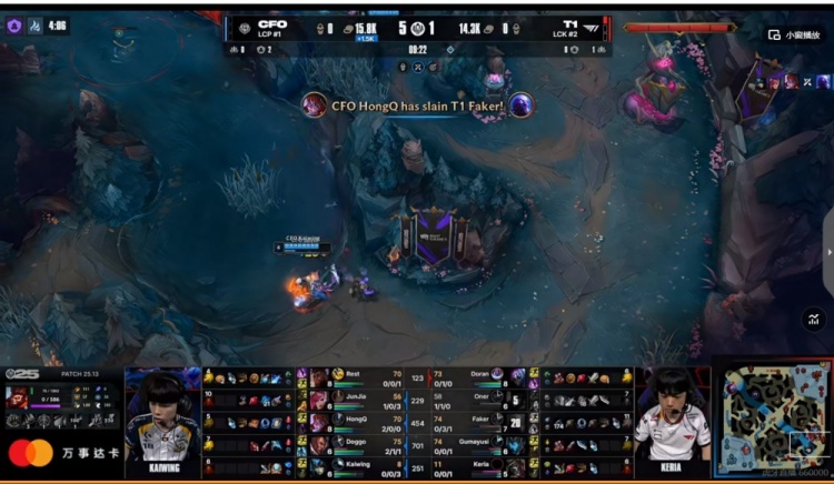 【13:53】CFO拿下二小龙!本局火龙魂!中路三个人直接强拆掉了T1的中一塔!随后Faker瑞兹强开结果和辅助互换!HongQ阿萝拉双杀!随后T1三人上路强行逮捕Rest奎桑提,但是CFO支援飞快又换掉了Gumayusi卡莉斯塔!这几波打完CFO领先来到了4K!
