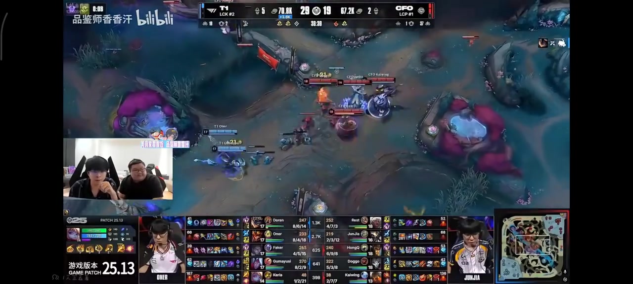 直播吧7月4日讯 MSI淘汰赛T1vsCFO第四局,wayward和qingtian解说比赛;